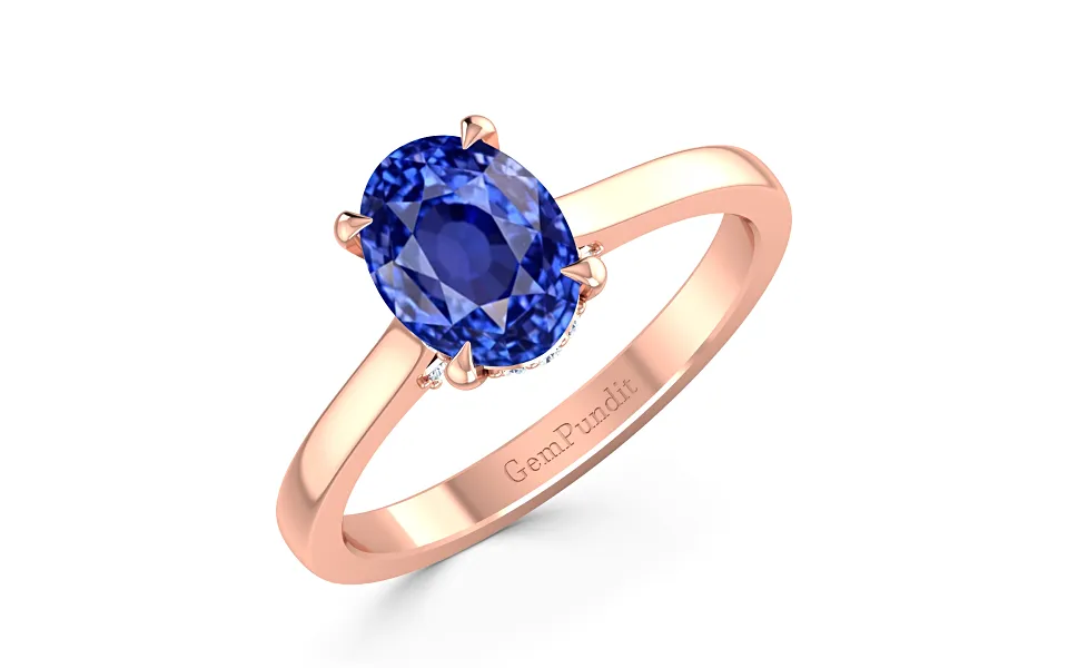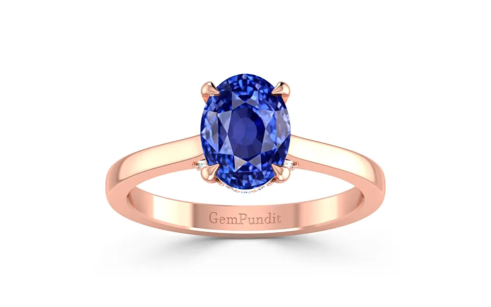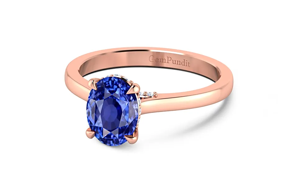 Side Accents Pave Set Blue Sapphire Rose Gold Engagement Ring